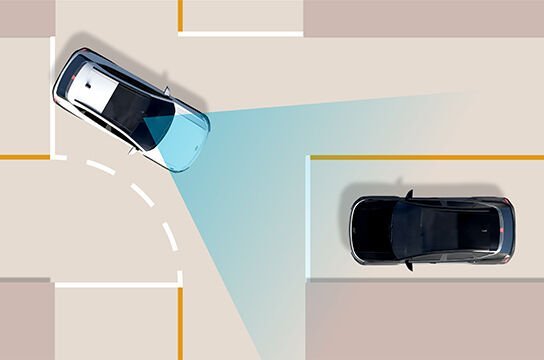 Cegah kendaraan keluar jalur lewat kamera depan untuk memantau garis jalan. Jika kendaraan keluar jalur tanpa sengaja, sistem ini memberi peringatan dan dapat mengarahkan mobil kembali ke jalur secara otomatis.
